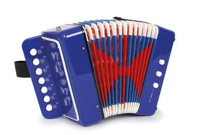 Tocar acordeão como nossos avós faziam! Com este acordeão azul, as crianças poderão fazer as suas primeiras experiências musicais e fazer música de acordo com os seus gostos.