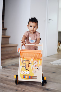 Este andador versátil chama a atenção e fascina os pequenos caminhantes iniciantes. Um andador extraordinário, que você não encontrará pela segunda vez no mercado e que não deve faltar na variedade de brinquedos de madeira.