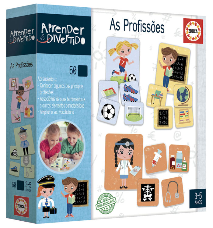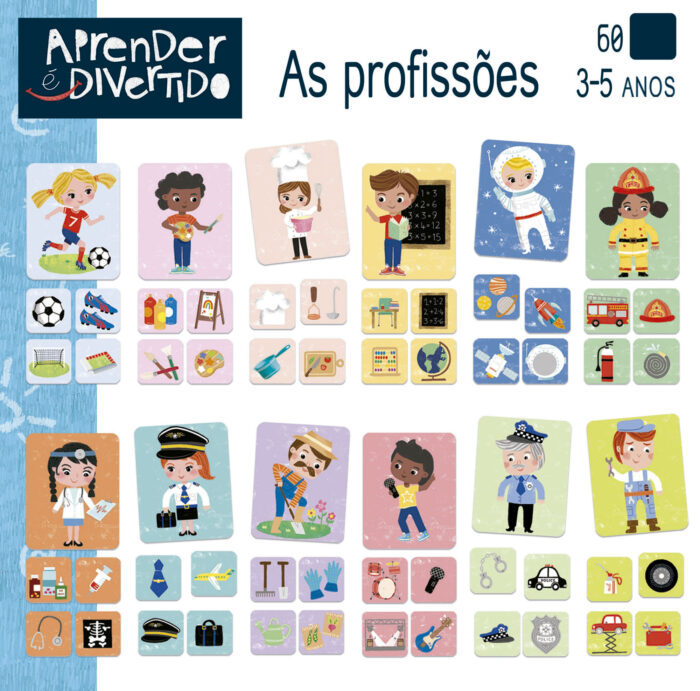 Com este divertido jogo podem aprender as profissões de forma aprazível a partir da associação das diversas personagens com os objetos que se relacionam com cada profissão. Conteúdo: