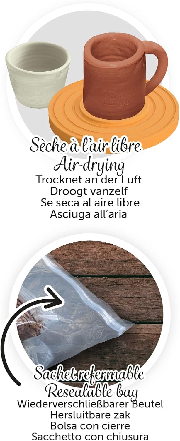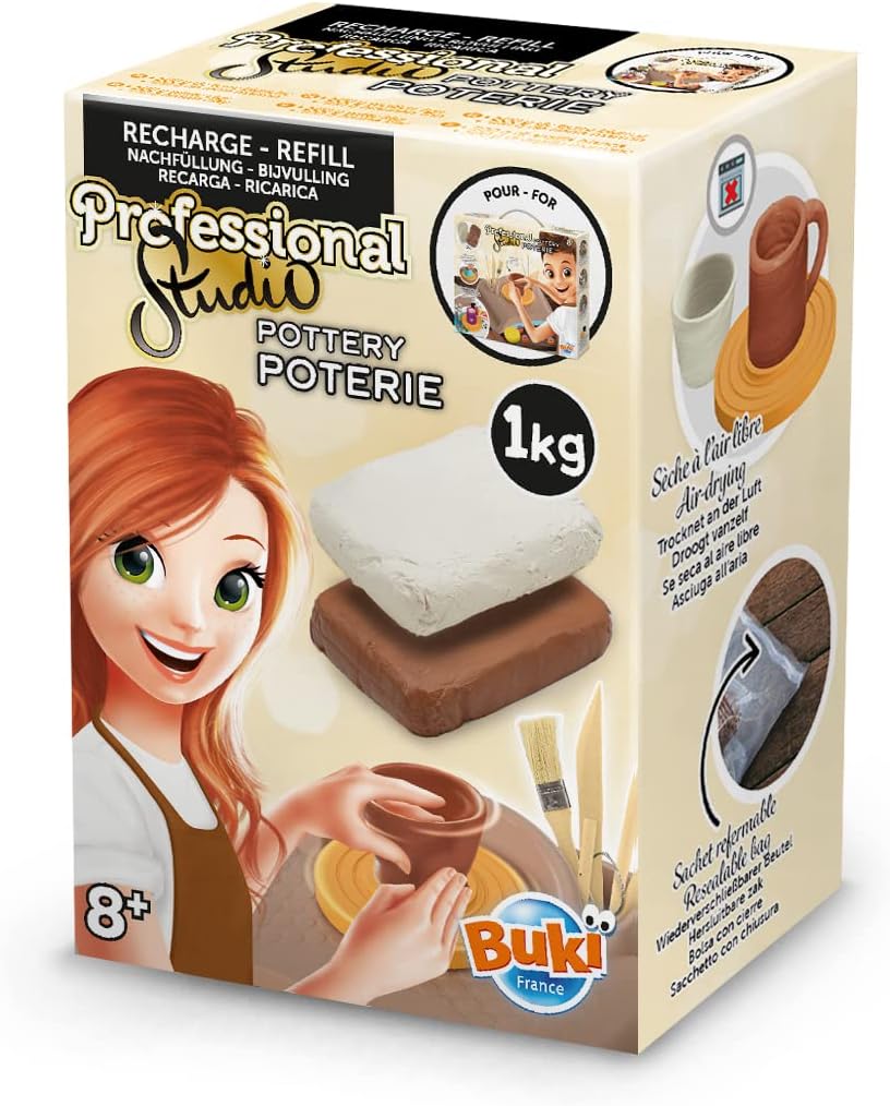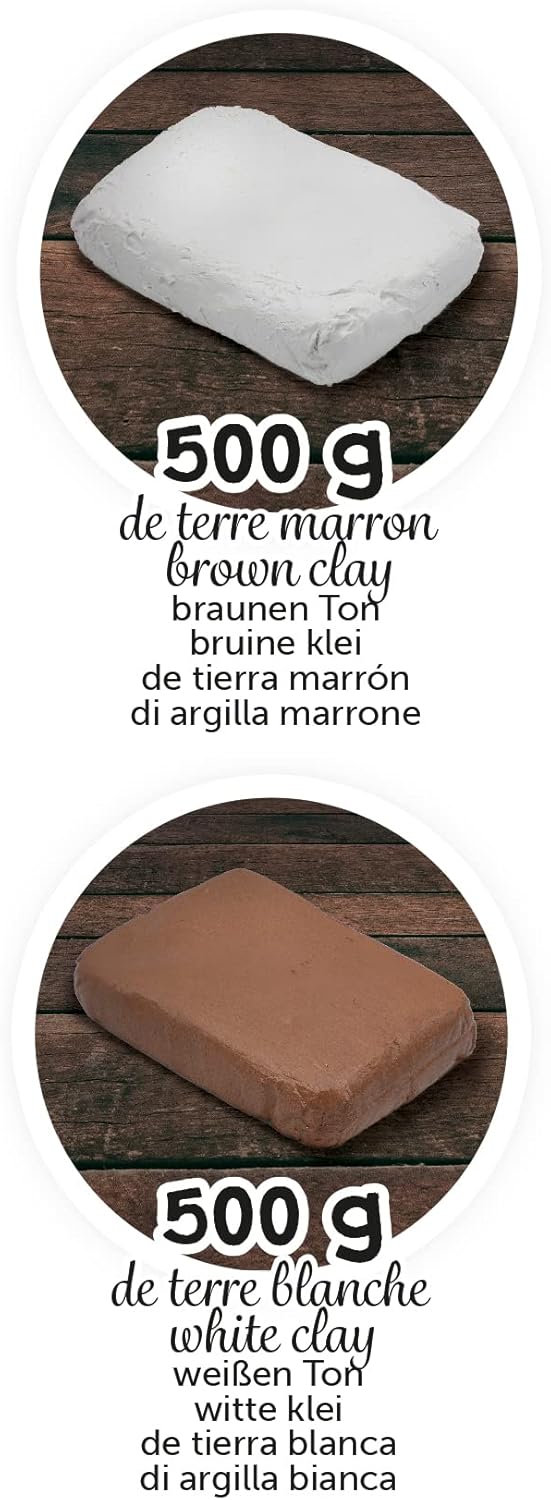 Descrição do Produto Uma recarga de cerâmica que inclui: 500 g de terra branca e 500 g de terra castanha A argila fornecida é seca ao ar livre e não requer cozimento Tempo de secagem completa: entre 48 e 72 h Um saco com fecho é fornecido para evitar que o solo seque depois de aberto o pacote compatível com a caixa