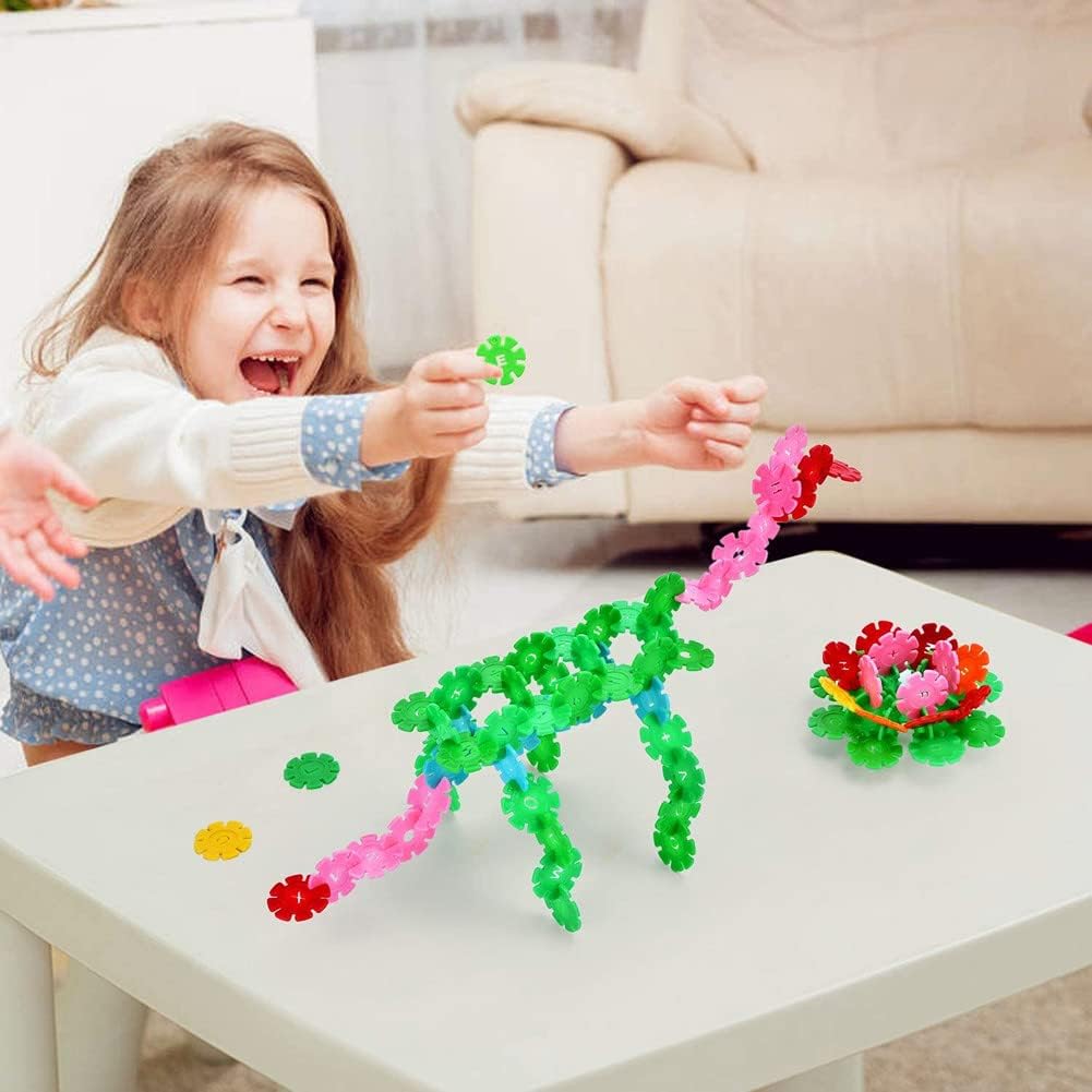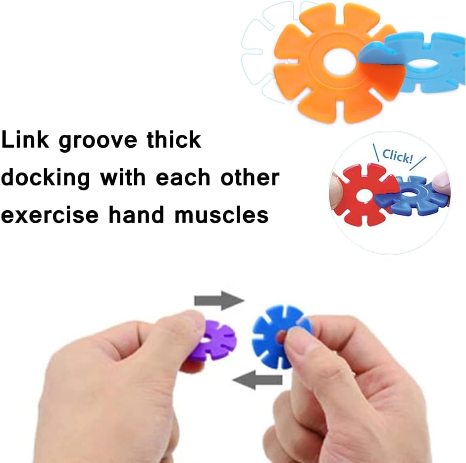 Tamanho: 400 peças de blocos de construção de floco de neve, elementos de plástico de 33 mm de diâmetro com ranhuras que podem ser inseridas em cada entalhe.