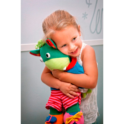 Com o Moogy, a criança aprenderá, aos poucos, a manipular fechos zip, botões, fivelas e botões que, no futuro, serão atividades muito úteis para aprender a se arrumar por conta própria.