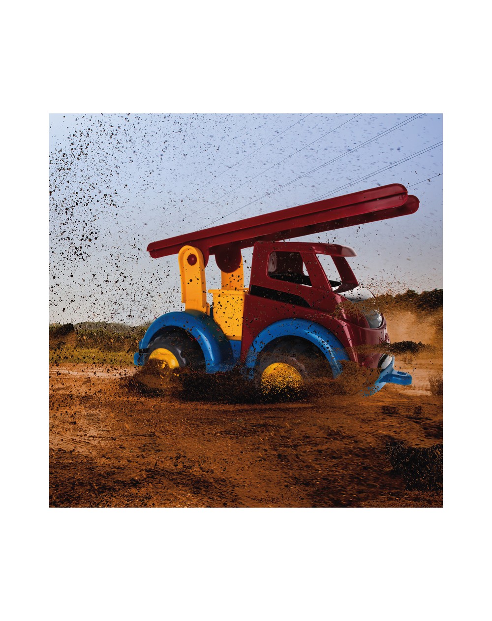 O poderoso caminhão de bombeiros com seu design resistente e pneus ásperos e escada robusta está pronto para participar da mais poderosa aventura de jogo de todas.