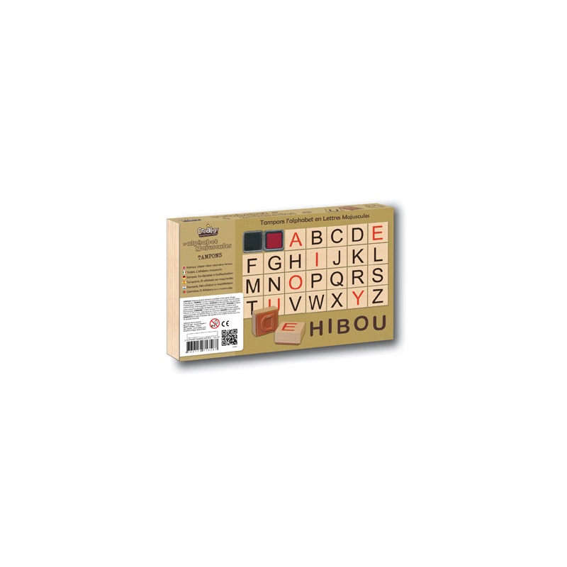 Com este conjunto de "alfabeto maiúsculo" Créalign, aprender torna-se uma brincadeira de criança! Composto por 26 carimbos de madeira com todas as letras do alfabeto em maiúsculas, as crianças poderão enfeitar seus mais belos desenhos e muitas outras atividades criativas.
