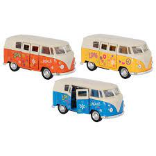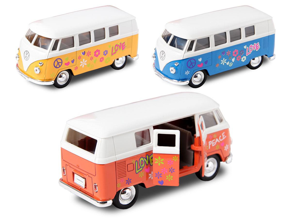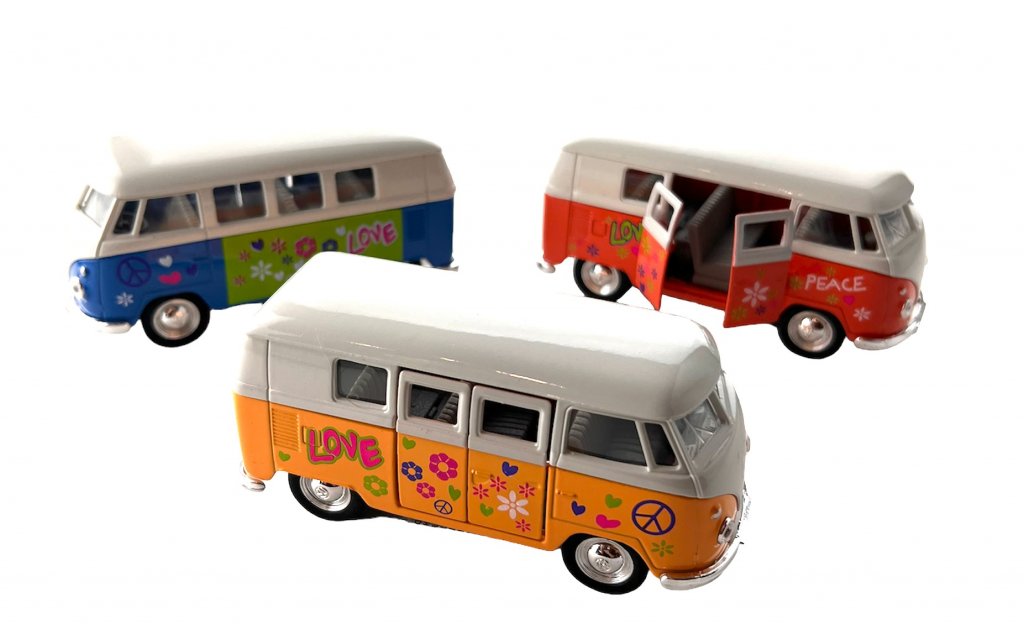 A Kinsmart, sua especialista em miniaturas de carros para brincar e colecionar, apresenta sua mais nova joia: a miniatura Volkswagen Combi T1 1963, disponível em design hippie. Equipado com portas duplas móveis e um sistema de retração automática, este carro em miniatura é uma verdadeira façanha tecnológica. Além de incrivelmente detalhado e atraente, seu design inspira as crianças que sonham em ter ainda mais modelos.