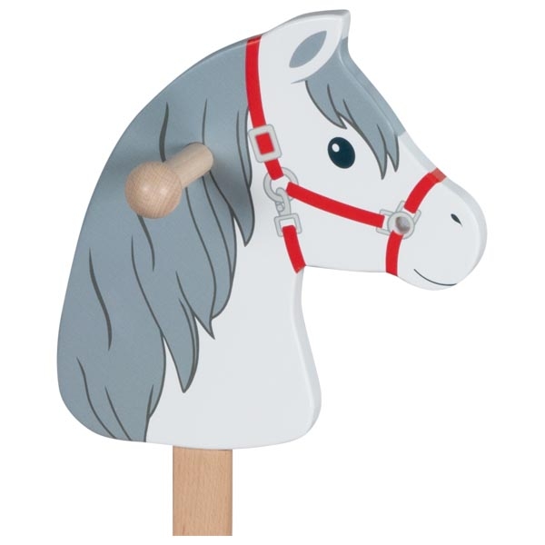 Este lindo cavalo de pau de madeira está procurando uma criança amante de cavalos que quer saltar cross country com ele.