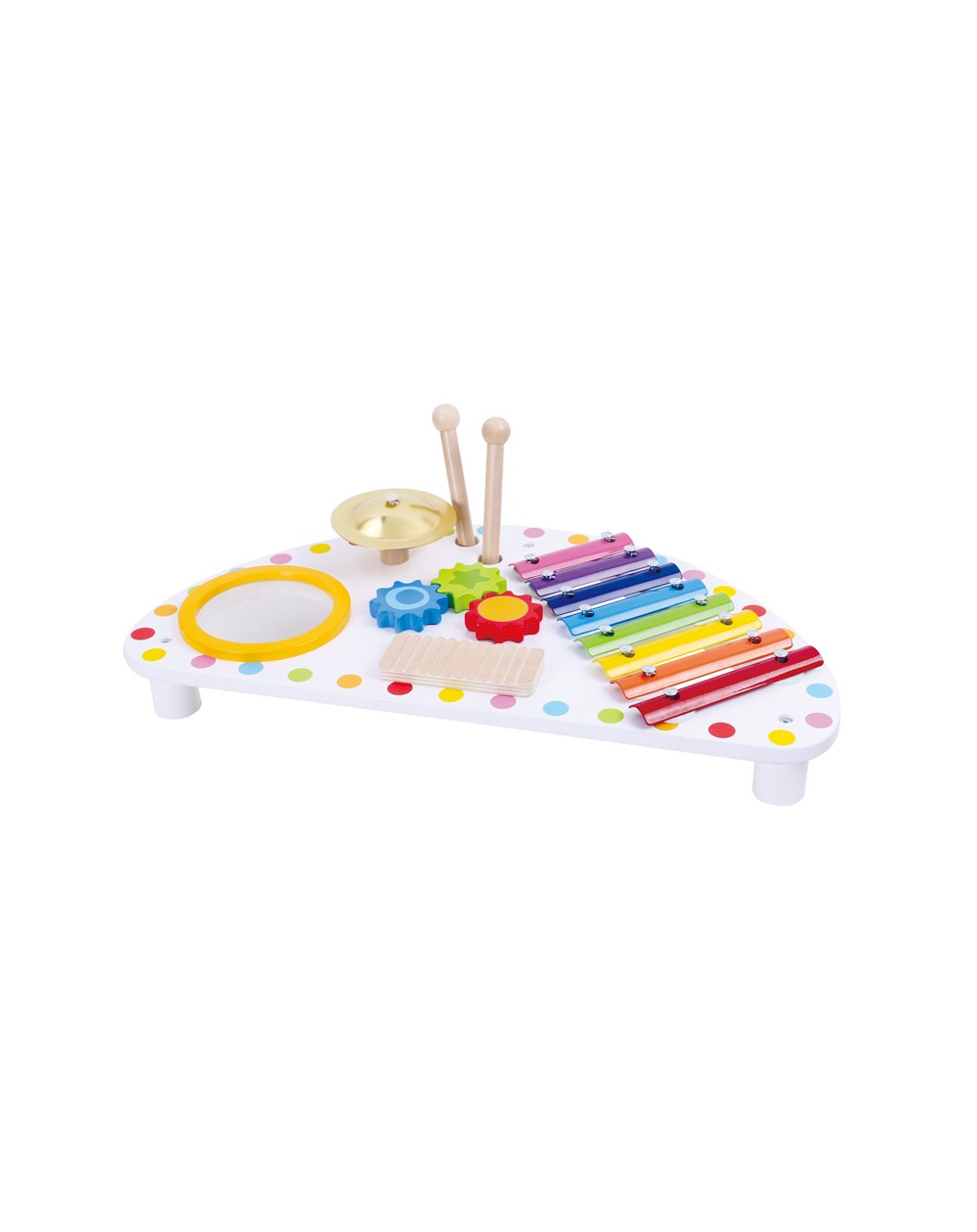 Mesa multifuncional com 5 instrumentos musicais.