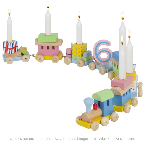Comboio de Aniversáro com 7 Vagoes Madeira 57cm 1 a 6 anos 14pcs gk106 +12 meses