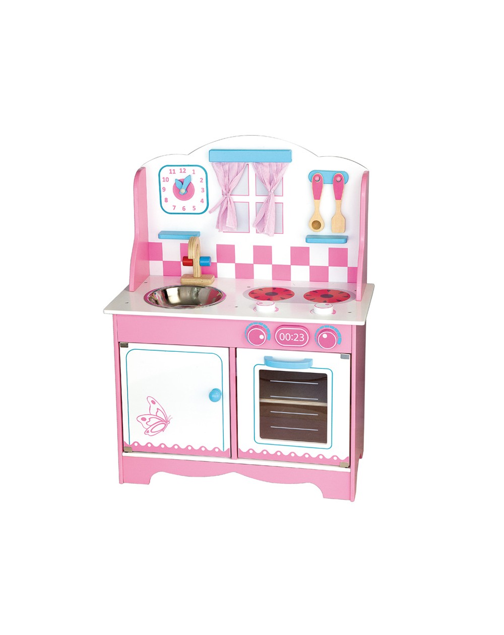 Esta linda cozinha de madeira foi feita com o propósito de proporcionar muitas horas de diversão para as crianças.