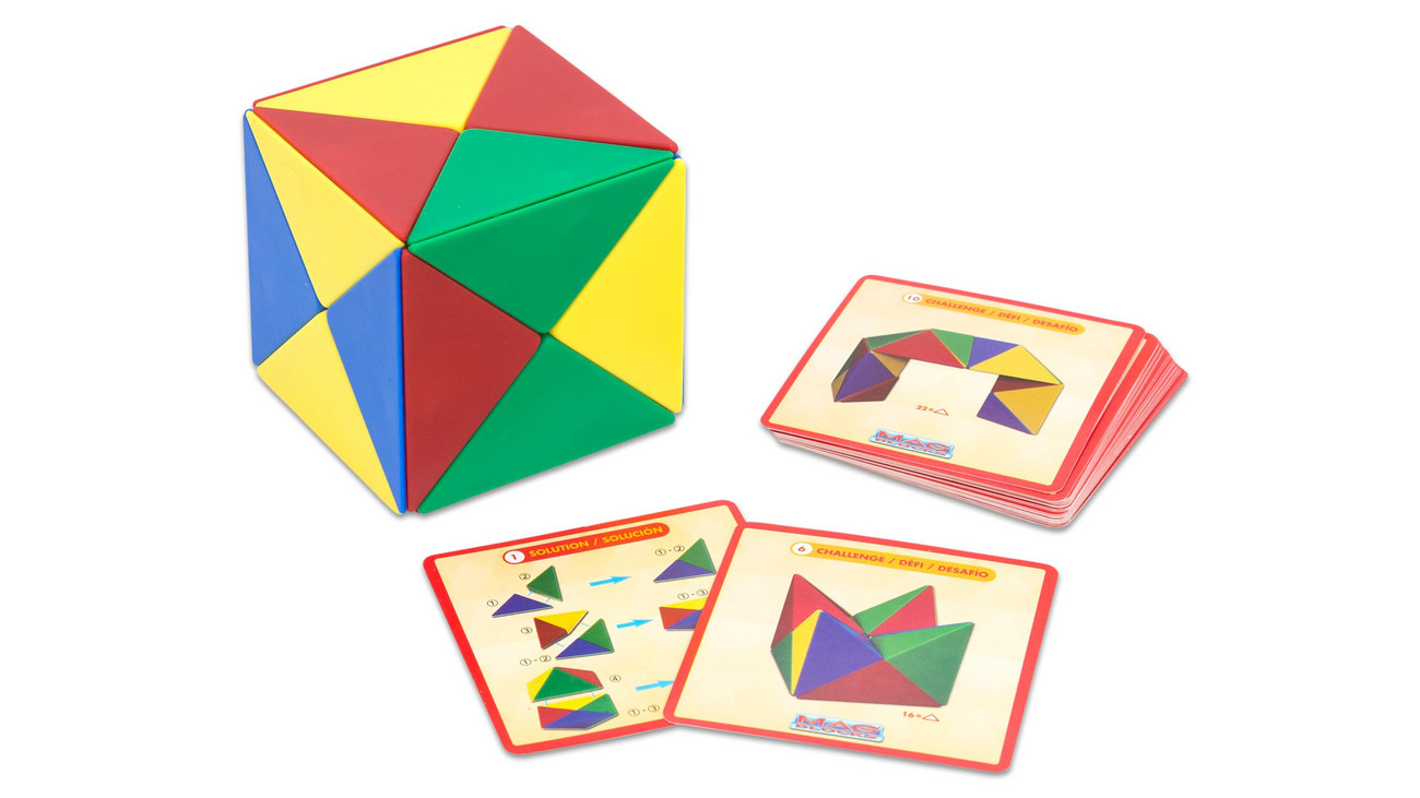 Diversão geométrica para jovens e adultos em vários níveis de dificuldade O cubo magnético infantil é composto por 24 blocos de construção em formato de pirâmide. Com ele, é possível criar inúmeras figuras e estruturas geométricas — livremente ou seguindo um modelo. Muitas vezes, é mais desafiador do que parece. Mas, se você não souber o que fazer, as soluções no verso dos cartões de instruções ajudam. Desenvolve a imaginação espacial