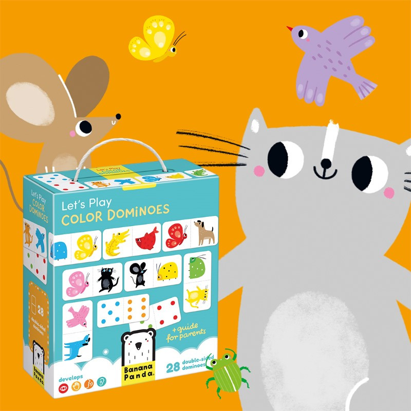 Este jogo de dominó original é muito versátil, pois as crianças podem conectar as peças por cor, por animais ou em qualquer correspondência que preferirem.