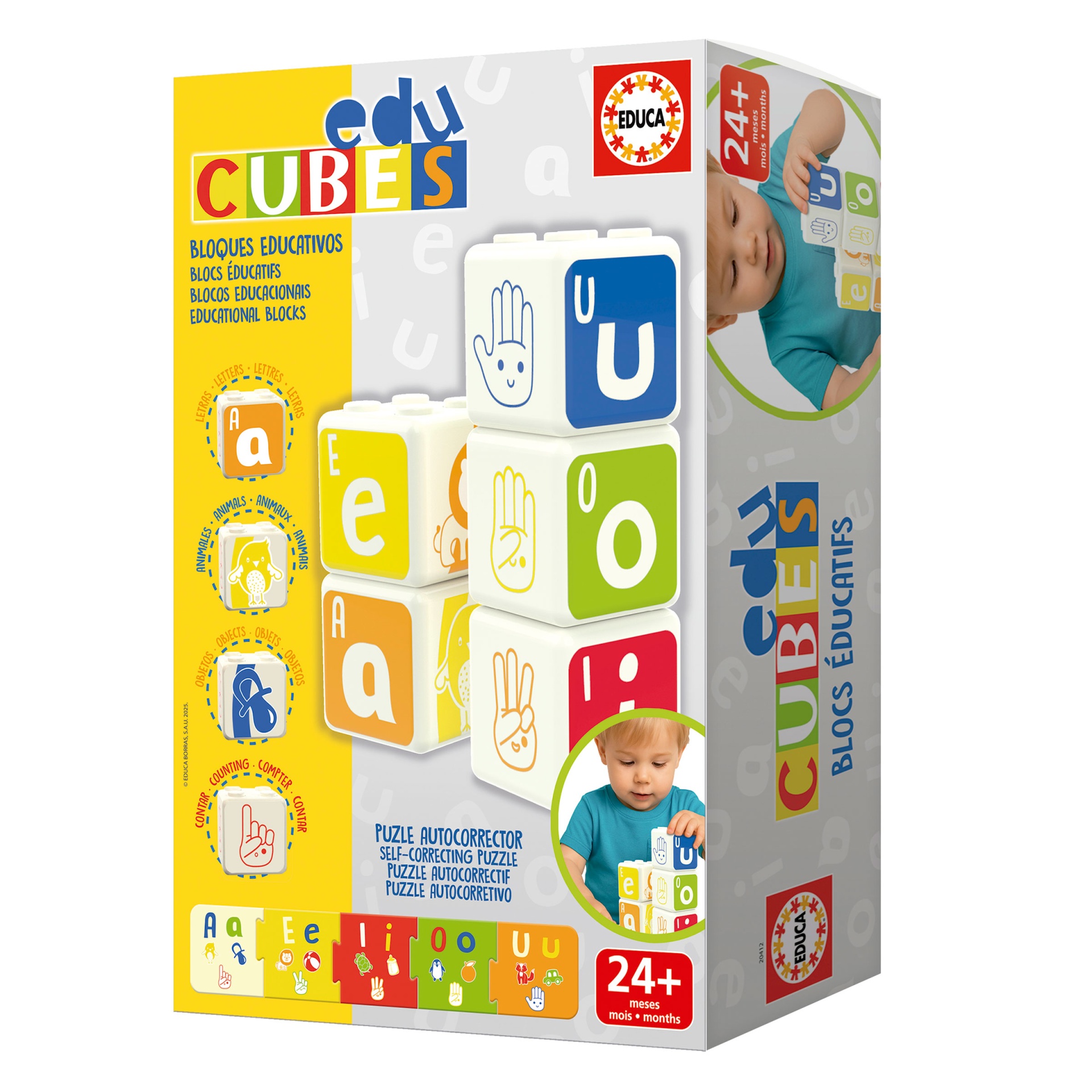 Os Educubes são cubos educativos que promovem o desenvolvimento motor, cognitivo e sensorial em crianças a partir dos 24 meses de idade, através de 5 cubos de plástico empilháveis.