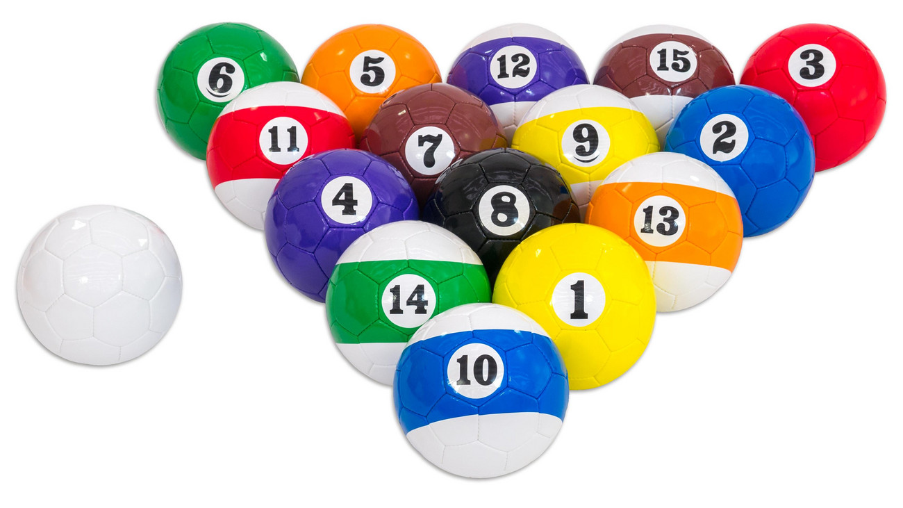 Este conjunto é composto por 7 bolas inteiras, 7 bolas com metade da bola e uma bola preta em formato de "8", como no bilhar tradicional. Ao contrário das bolas numeradas, a bola branca tem um quique reduzido. O objetivo do jogo é marcar as bolas coloridas com a bola branca, em duplas ou em equipe. Quem consegue fazer isso primeiro e marcar a bola preta no final?