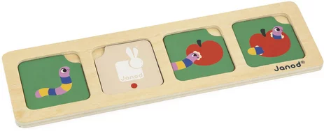 No âmbito da oficina Duo, você pode apoiar seu filho na aprendizagem: deixe-o colocar os cartões no suporte e depois explique como a cena se desenrola.