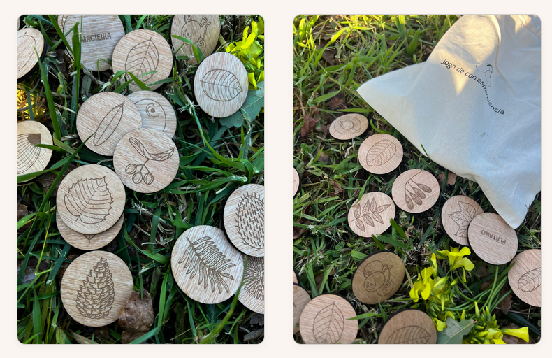 O jogo "Folhas e Frutos" foi criado para ajudar as crianças a reconhecer e associar as folhas das árvores aos seus respetivos frutos de forma lúdica e interativa. Com peças redondas de 5 cm de diâmetro, este jogo é uma excelente ferramenta educativa para explorar a diversidade das árvores que encontramos em florestas, parques e jardins.