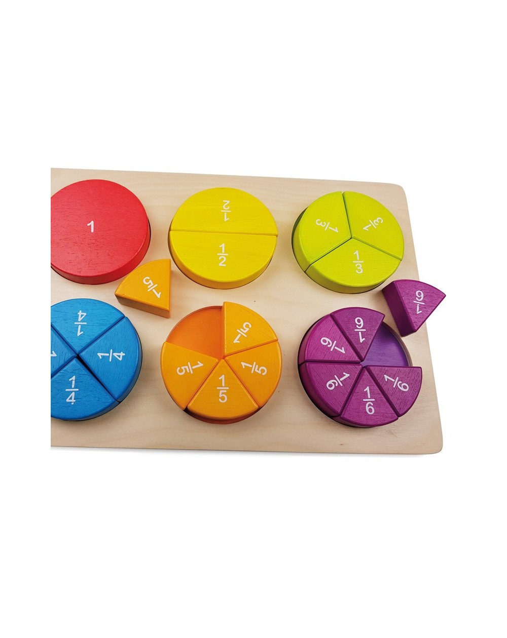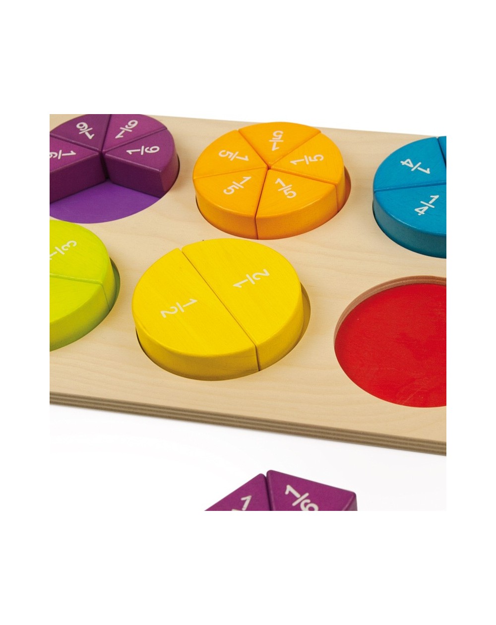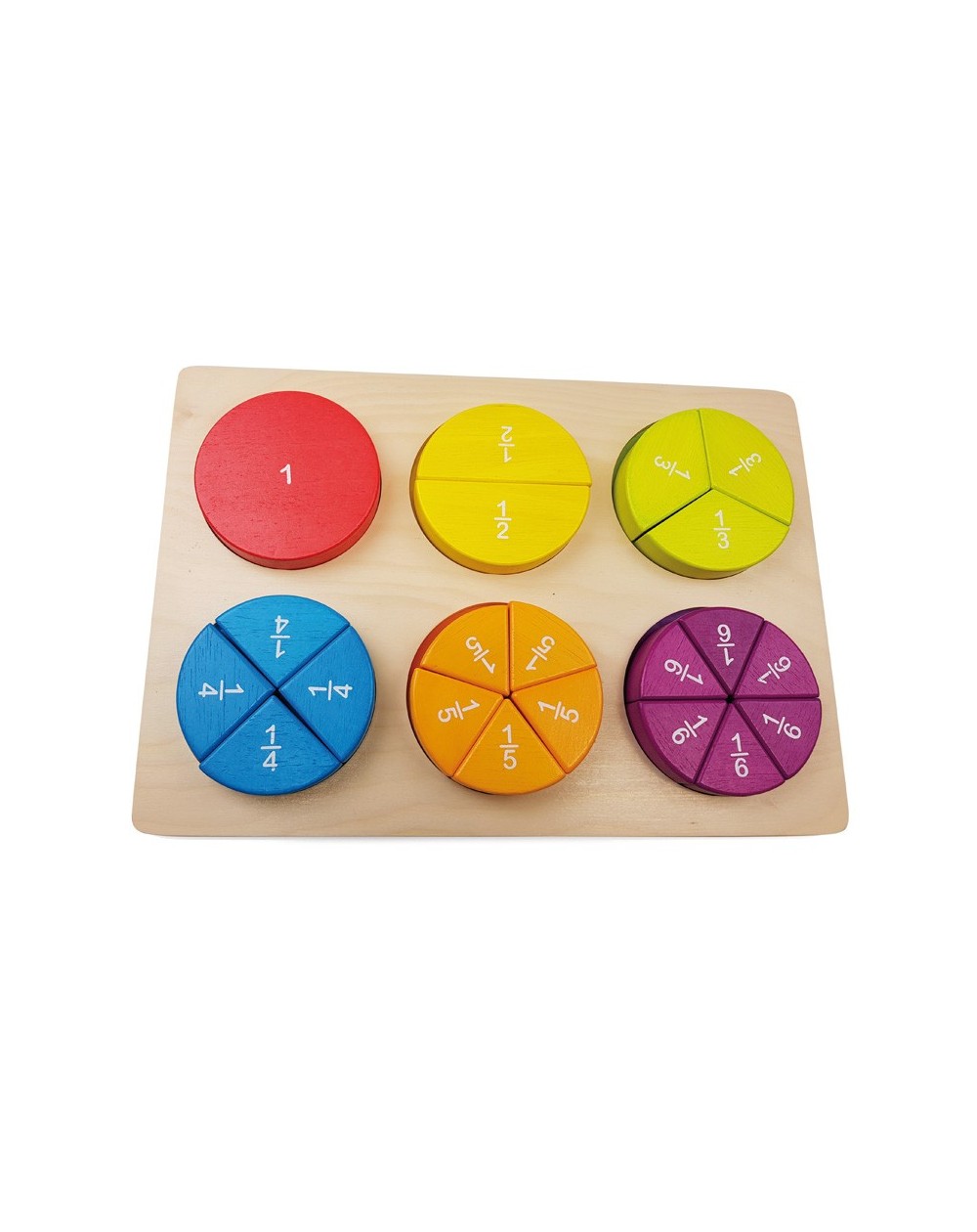 O tabuleiro inclui de 1 a 6 frações.