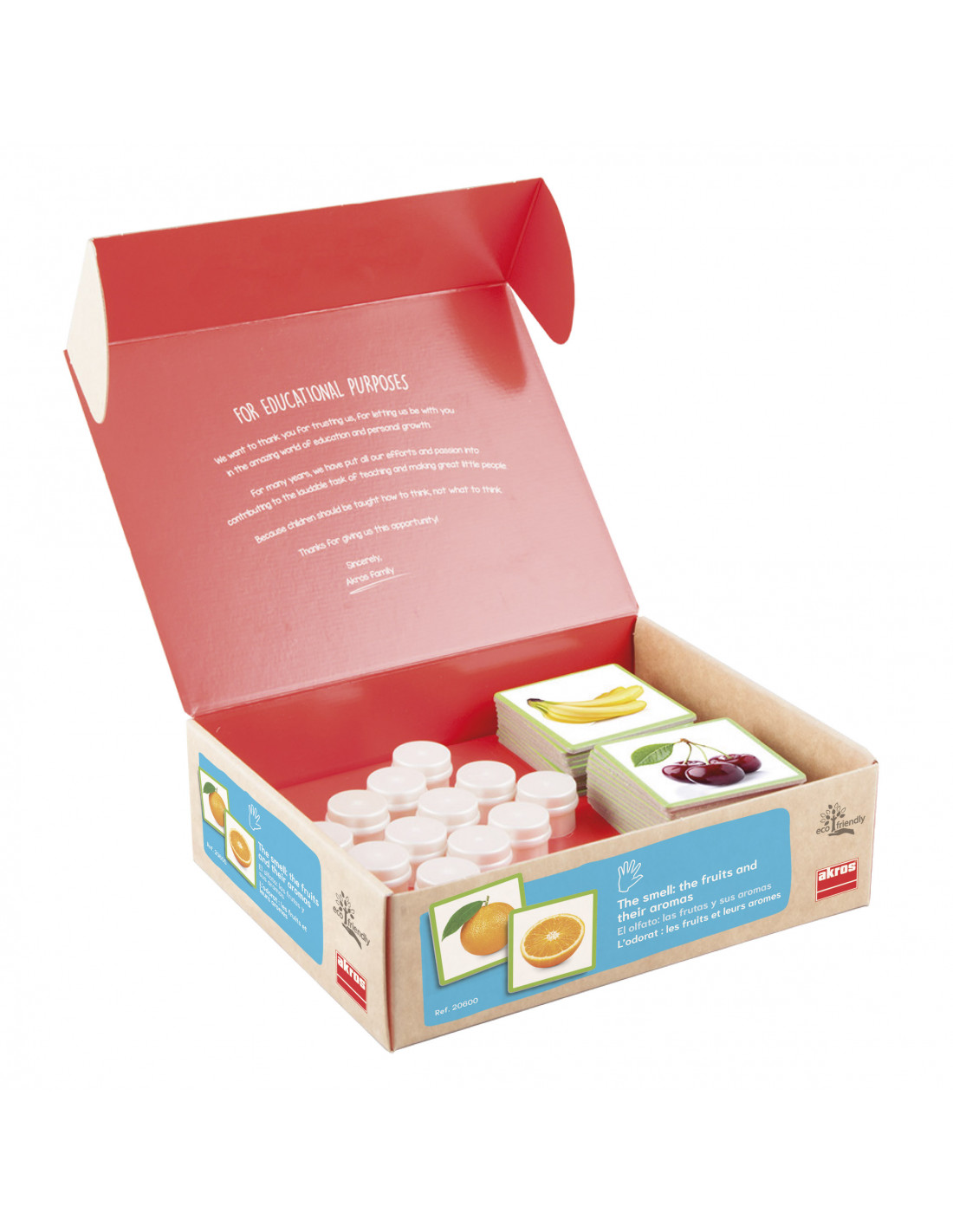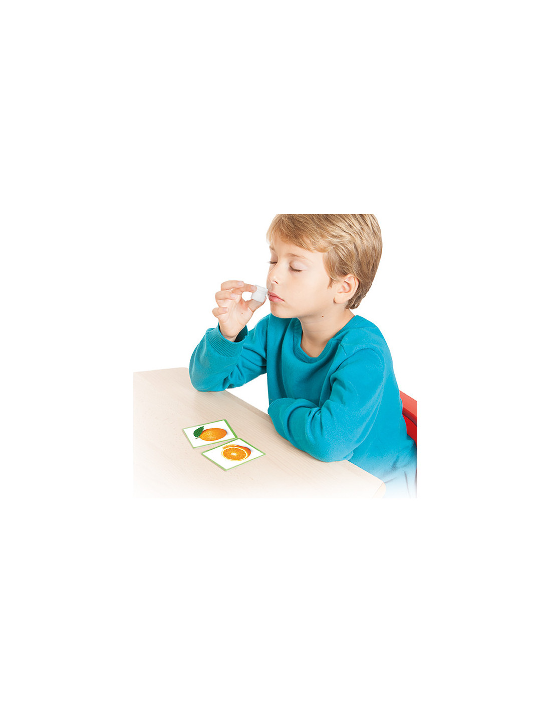 Jogo sensorial para desenvolver o olfato, baseado na diferenciação dos aromas das diferentes frutas.