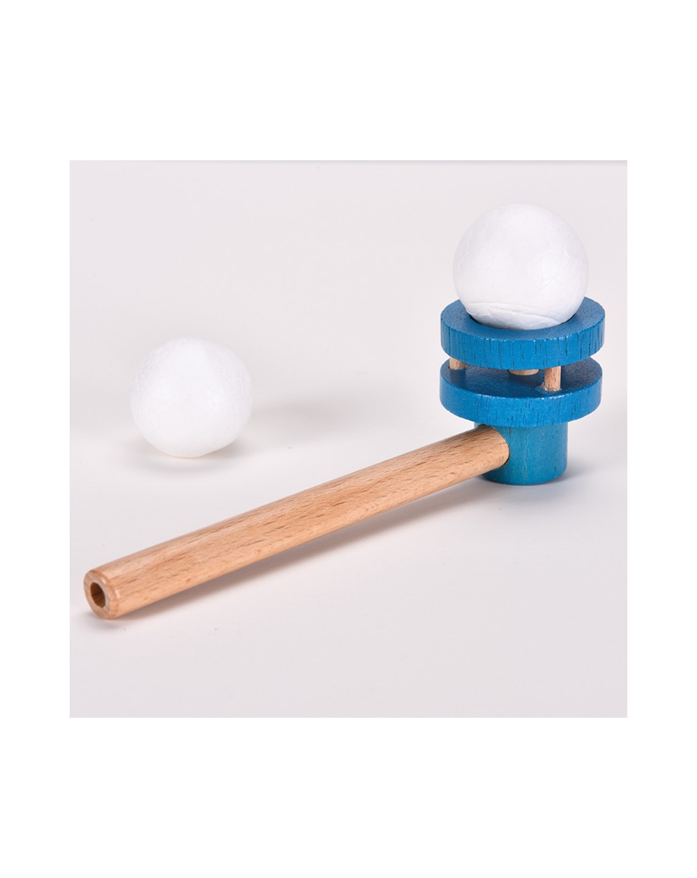 Sopre através do tubo de madeira e veja quanto tempo você consegue manter a bola flutuando!