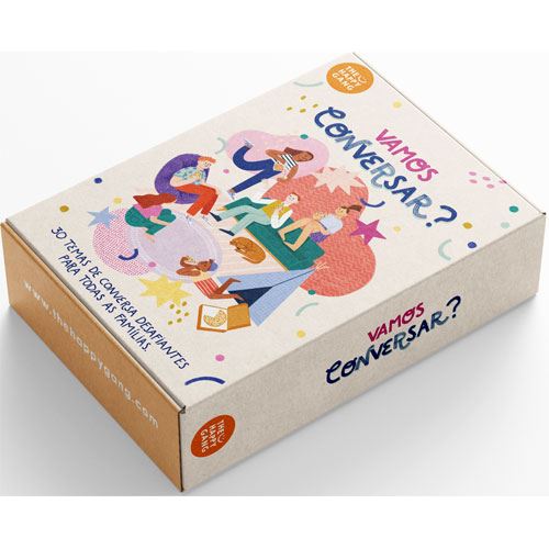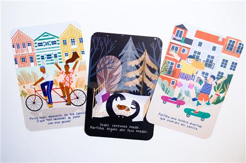 Nesta caixa encontras 30 cartas com questões, temas e incriveis ilustrações para facilitarem esses momentos de conversa, além de um livro com sugestões para usares as cartas com a tua família.