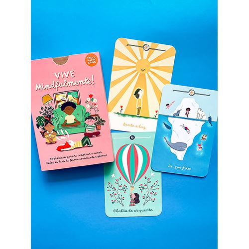 Nesta caixa vais encontrar 1 livro e 32 cartas ilustradas para explorar em família, com práticas simples que te vão inspirar e ajudar a viver todos os dias, de forma mais consciente e plena.