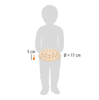 Diversão com efeito de aprendizagem! Neste popular jogo de memória o objetivo é encontrar as mesmas cores. As bases coloridas das 24 peças do jogo estão bem escondidas no campo de jogo de madeira sólida e natural. O cubo de cores determina qual cor deve ser encontrada. Um jogo de memória envolvente que já é muito divertido para crianças mais novas e treina habilidades motoras finas, além de reconhecimento de cores, concentração e memória ao mesmo tempo. Para reduzir o nível de dificuldade, você também pode jogar sem dados! Se um jogador encontrar duas peças da mesma cor entre quatro, ele pode ficar com elas. O jogador que tiver encontrado mais pares no final ganha o jogo. O alto teor de madeira visível e o acabamento sólido tornam o jogo de tabuleiro um verdadeiro favorito no armário do jogo e o complemento ideal para o Listening Memo e o Memo para treinar o desenvolvimento sensorial! Uma peça essencial que não deve faltar em nenhum sortimento de jogos.