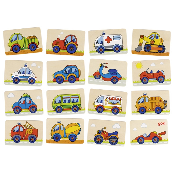 Jogo de Memoria Veiculos Madeira 32pcs 56689 gk +3 anos