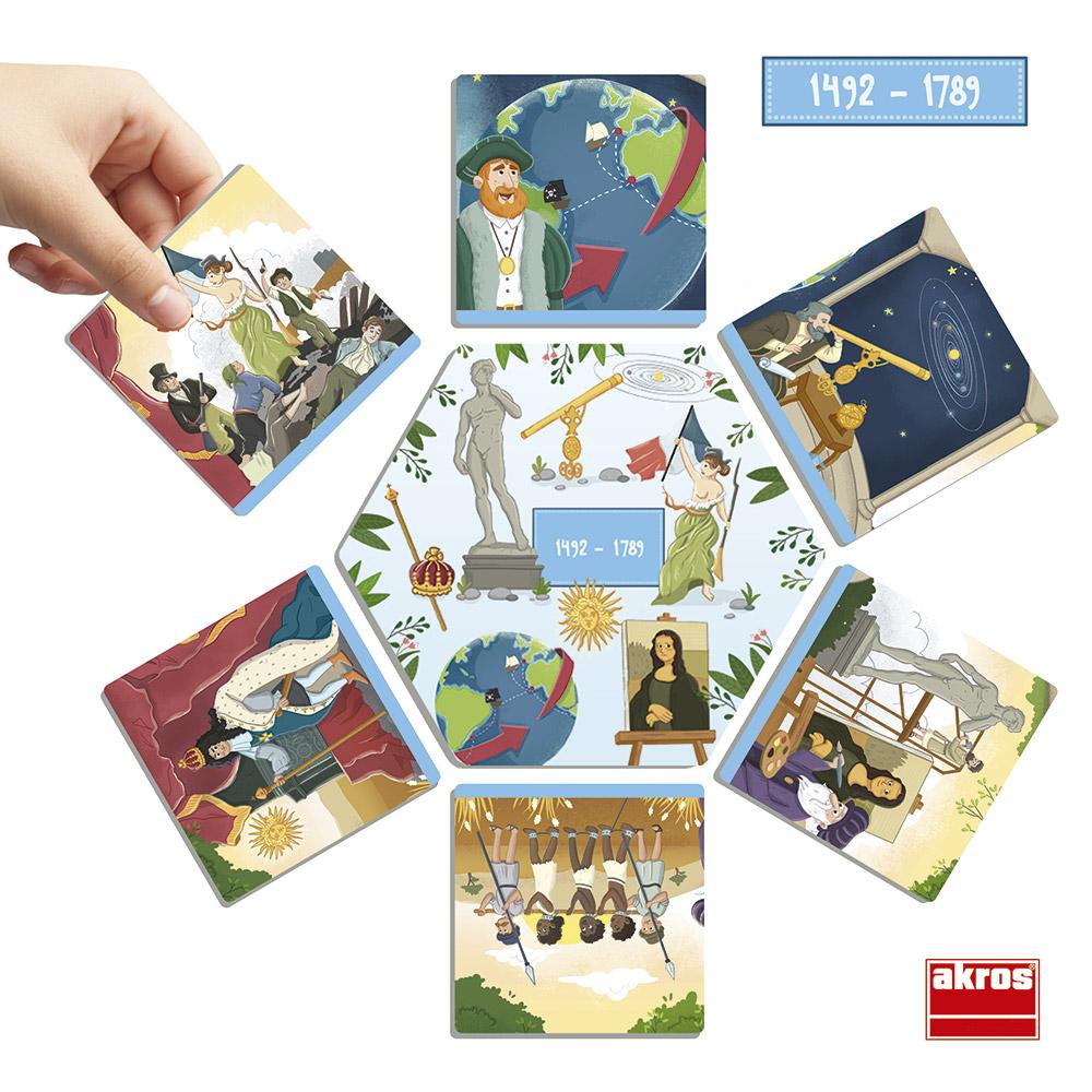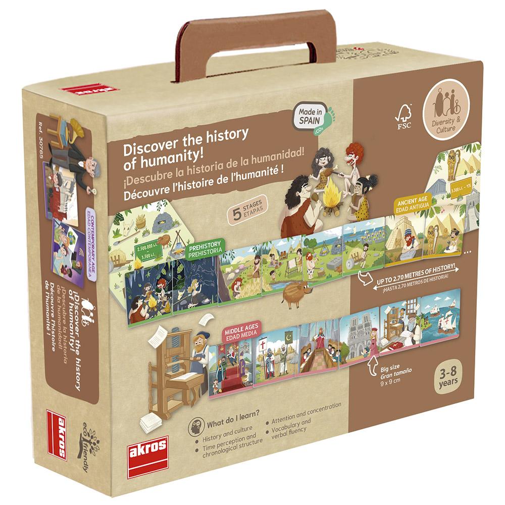 Porque gostamos? De uma forma muito simples, este jogo mostra as diferentes fases da história através de painéis ilustrados, junto aos quais deverá colocar as diferentes peças que fazem parte dessa fase e que ilustram acontecimentos relevantes ao longo do tempo, desde a pré-história até aos dias de hoje. Esses blocos também podem ser classificados cronologicamente como uma grande linha do tempo, não é legal?