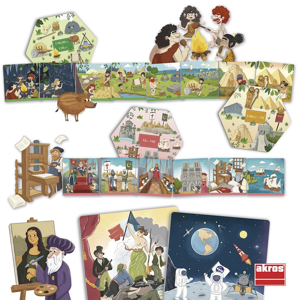 Neste grande jogo você terá que olhar as diferentes ilustrações e assim classificar os acontecimentos que elas refletem nas diferentes fases da história e depois ordená-las cronologicamente. As ilustrações mostram os grandes passos da humanidade, desde suas origens até os dias atuais.