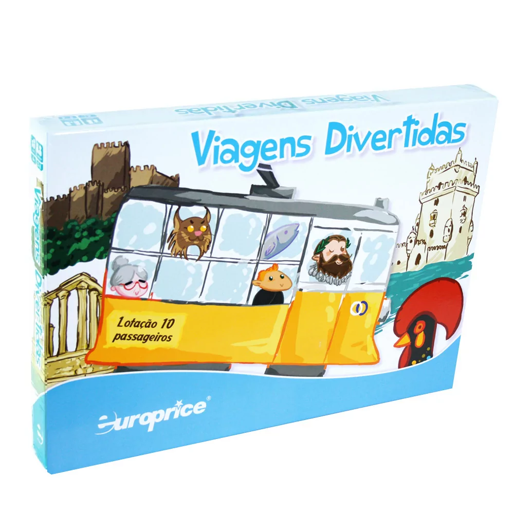 O jogo inclui: 1 tabuleiro puzzle com 4 peças. 40 passageiros. 4 elétricos. 4 pinos. 2 dados. Então, não esperes mais, junta-te às Viagens Divertidas e explora as lindas ruas de Portugal.