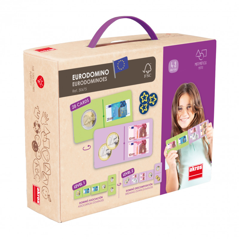 Além disso, este grande dominó ajuda a familiarizar com as equivalências monetárias e a fazer alterações.