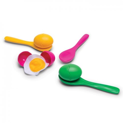 Equilibre o ovo na colher e corra.