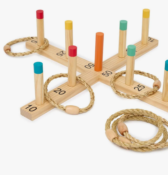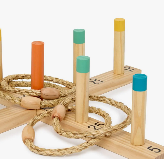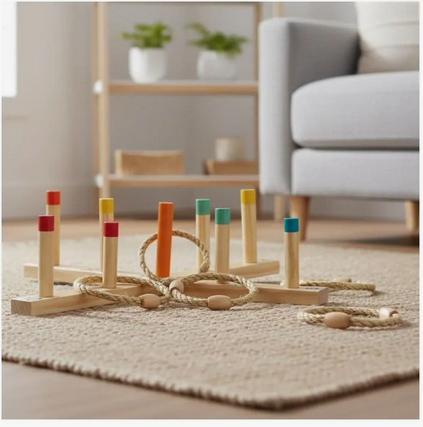 Com base de madeira e argolas de corda, ele estimula o movimento, a concentração e a diversão tanto em ambientes internos quanto externos.
