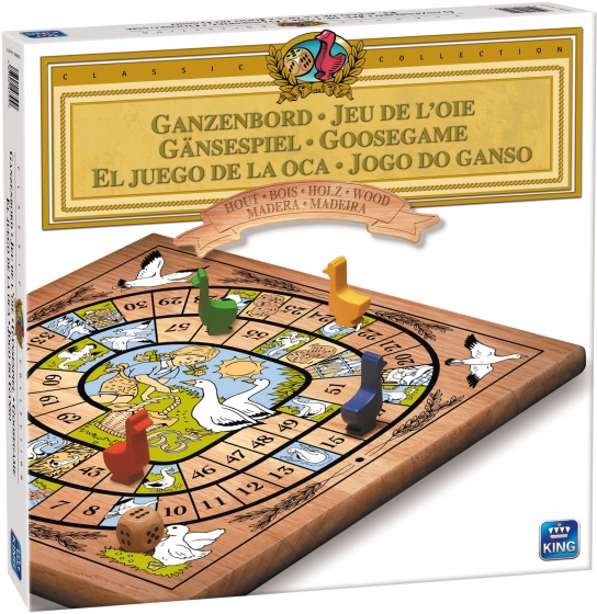 Versão luxuosa em madeira do clássico jogo de tabuleiro ganso. O jogador que for o primeiro a percorrer todo o percurso ganha este jogo emocionante!