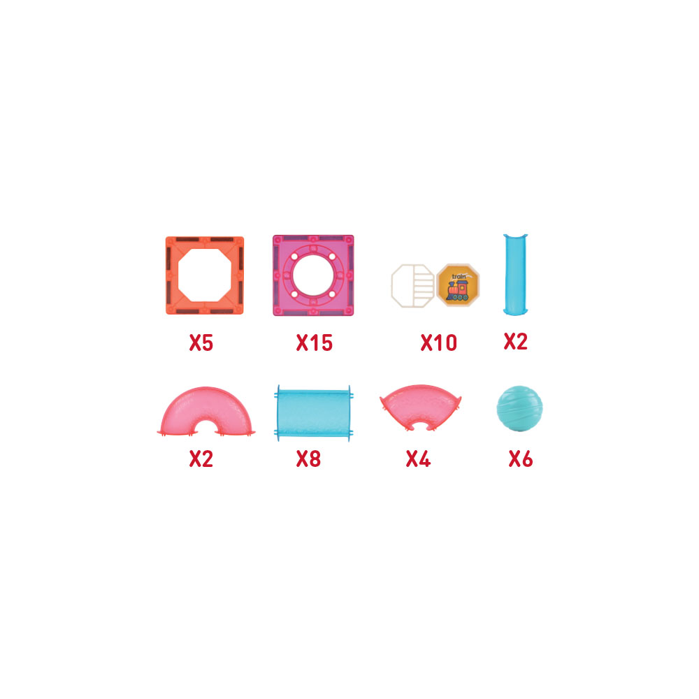 Jogo Labirinto Magnético de 52 Peças com tubos, bolas e Formas Magnéticas 3D STEAM Estimula a imaginação recriando conexões infinitas com formas magnéticas de várias cores de 7,5cm polarizadas. A brincar, a criança descobre conceitos essenciais e comuns a diversas ciências.