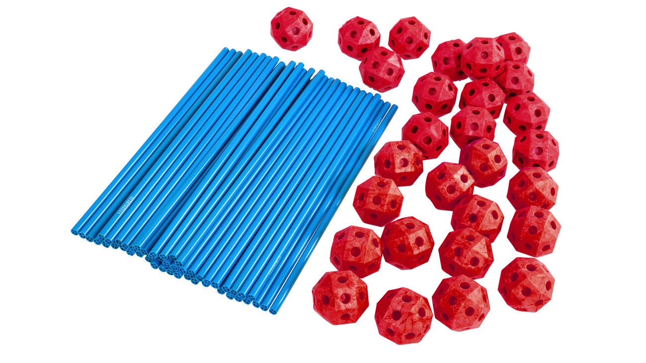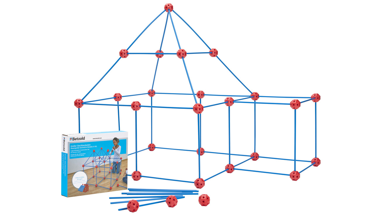 Dando vida à geometria Observe-a de fora ou explore-a por dentro: aqui, a geometria é vivenciada de todos os ângulos. Seus alunos aprenderão sobre as propriedades dos sólidos geométricos ao longo do processo. Quase todos os sólidos geométricos podem ser descobertos com este conjunto: cubos, paralelepípedos, pirâmides e muitos outros. Conceitos como aresta, lado, base, altura e diagonal podem ser facilmente explicados e percebidos de todos os ângulos. Os modelos grandes atraem as crianças, incentivam a participação ativa e são muito fáceis de montar: basta inserir as hastes nos conectores esféricos e montá-las em construções sempre novas.