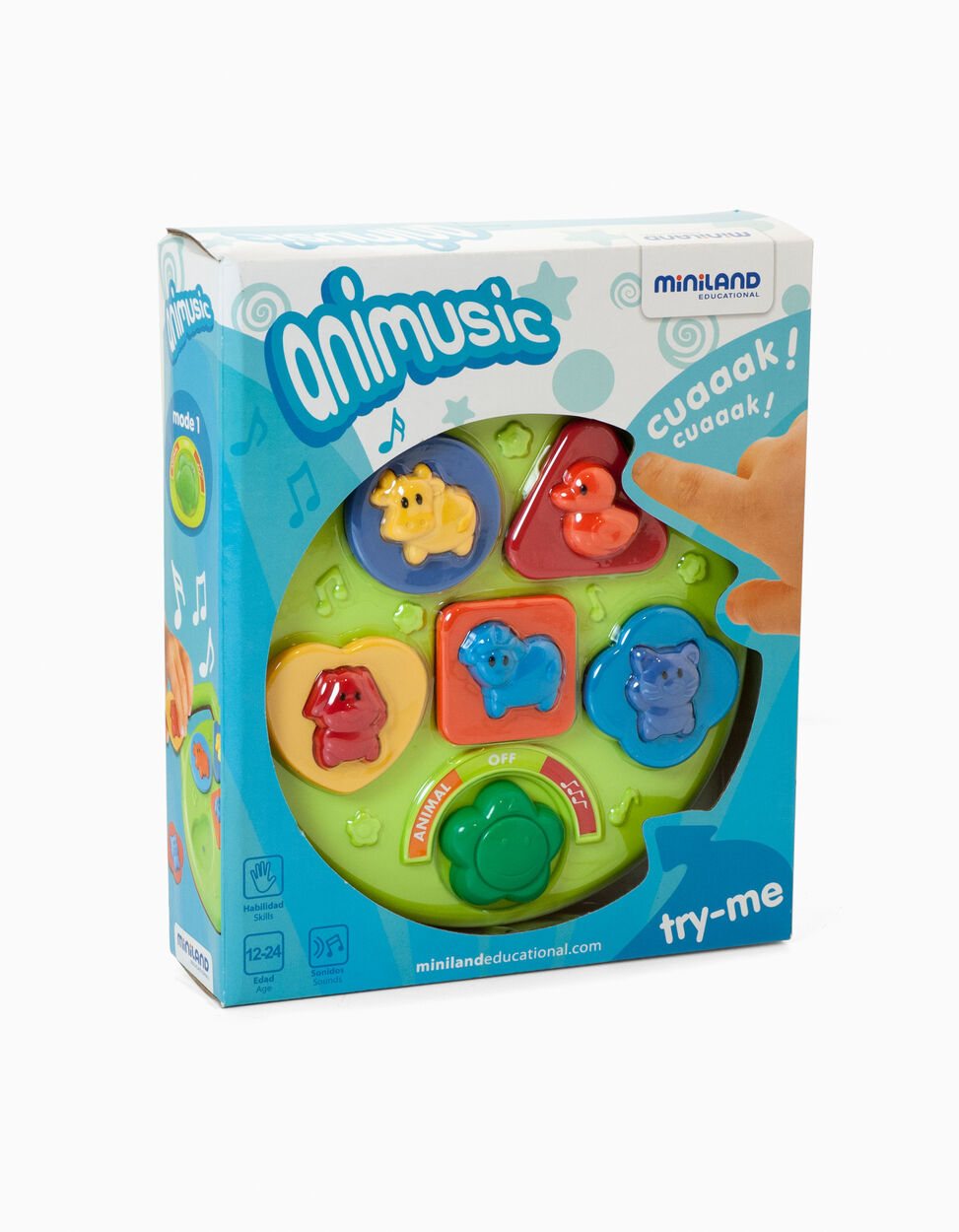 Animusic contém cinco formas para encaixar e descobrir os cinco alegres sons de animais.