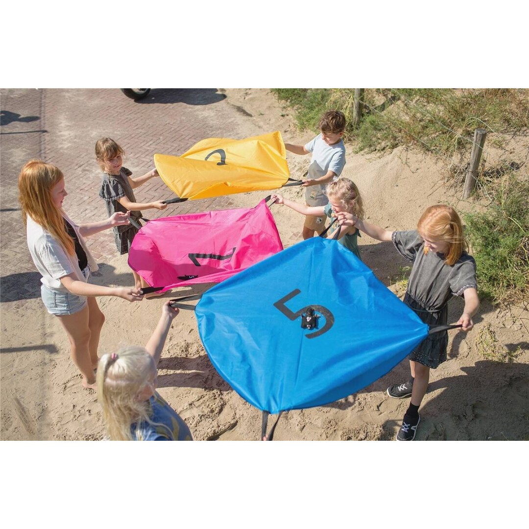 5 pára-quedas de 100 cm ø | 5 sacos de esquilos 13 x 7 x 2 cm.
