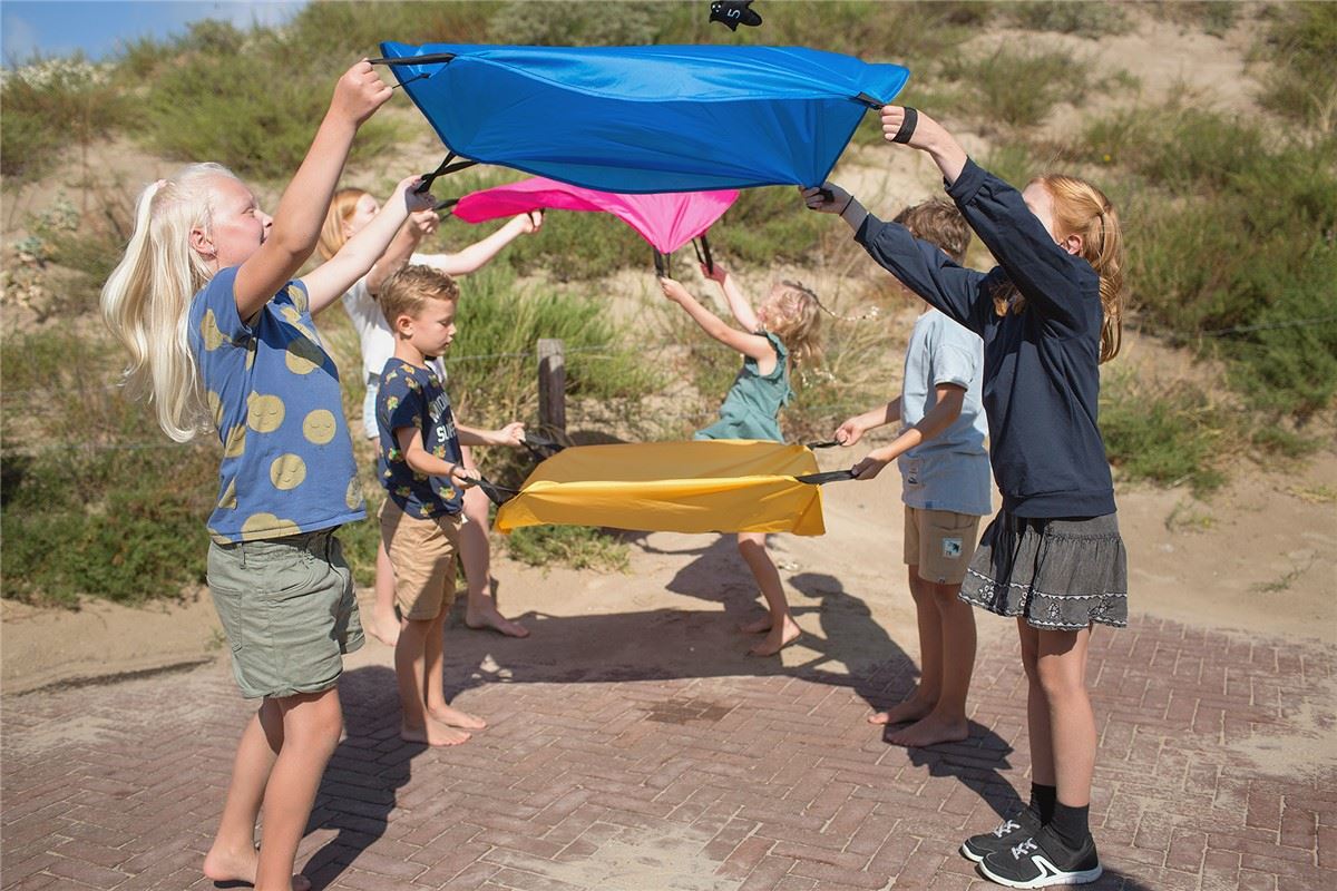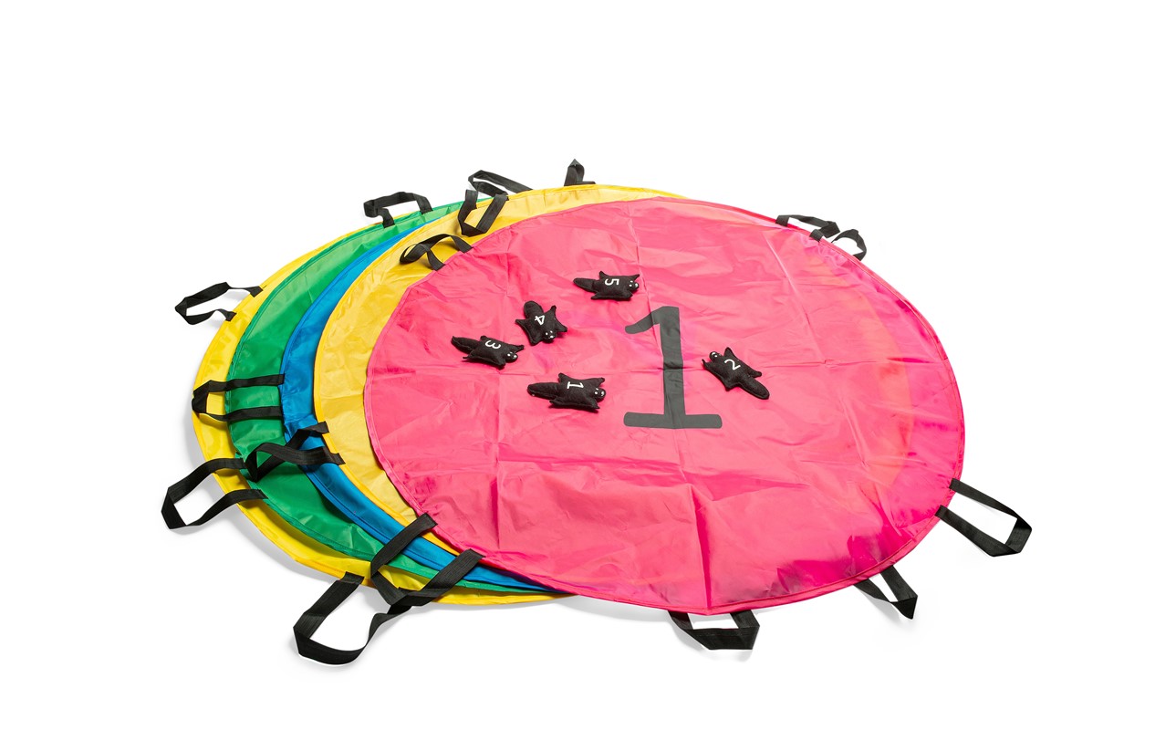 Jogue-os de um pára-quedas para outro sem deixar cair nenhum.