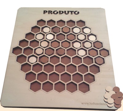 Material: 1 tabuleiro hexagonal com cinco casas de lado, 45 peças escuras e 45 peças claras.