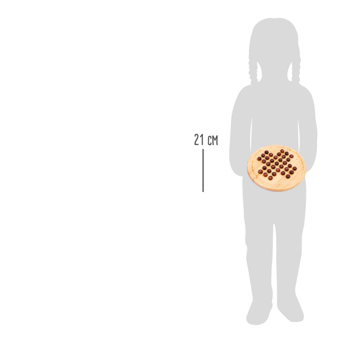 As esferas de madeira polida devem saltar umas sobre as outras no tabuleiro, de modo que no final só fique uma.
