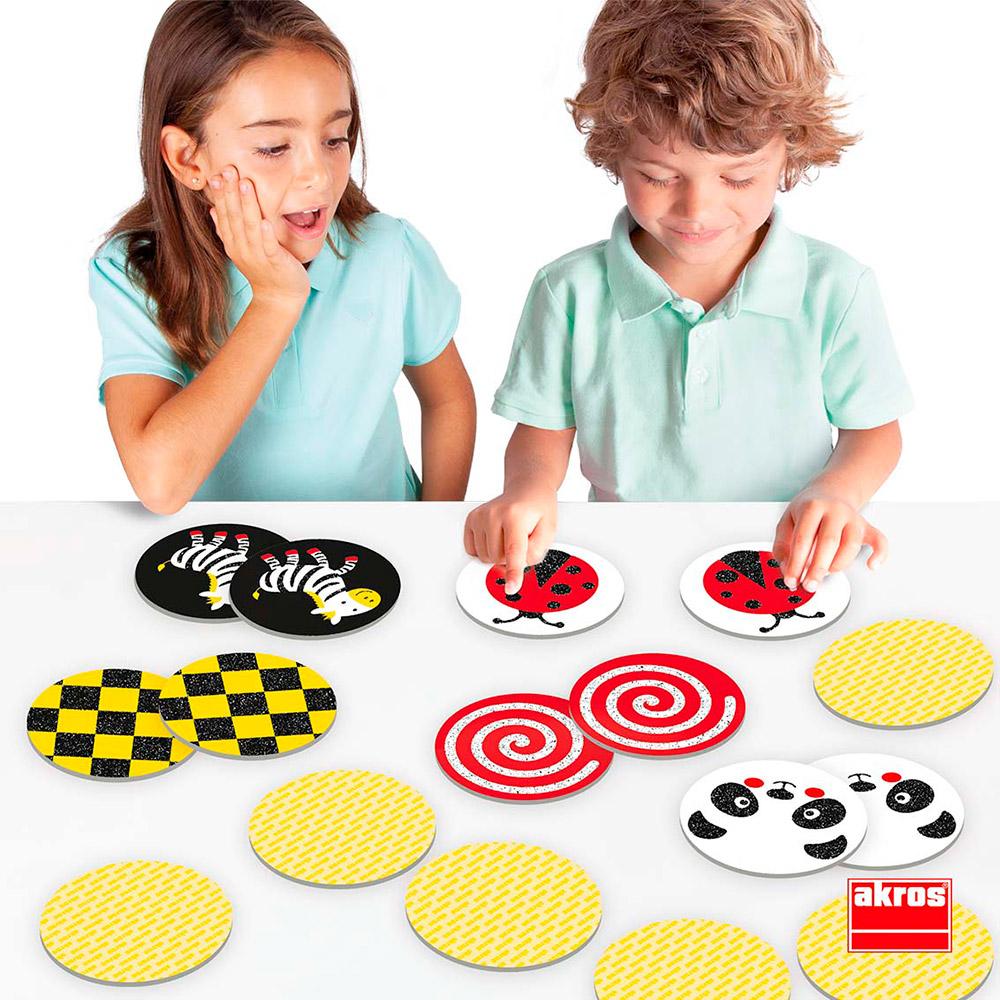 Porque gostamos? Os jogos inclusivos e educativos são os que mais gostamos e este jogo da memória é um deles.As suas funcionalidades facilitam a participação neste jogo para crianças com baixa visão e crianças com deficiência visual. Alguns dos objetivos didáticos da memória tátil são trabalhar a memória, a atenção, a observação e o desenvolvimento sensorial. O material dos tokens é ecológico, proveniente de florestas sustentáveis e 100% reciclável.