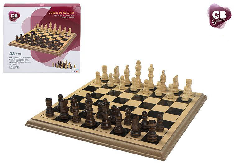 Jogo de Xadrez com, Tabuleiro e peças em Madeira 30x30cm