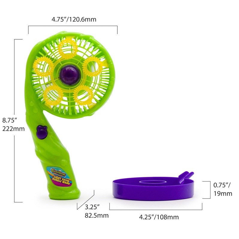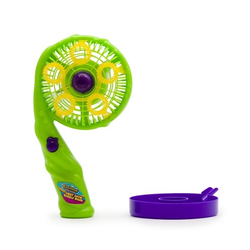 Coloca a solução de bolha Gazillion na bandeja, mergulha a varinha na solução e pressiona o botão para a melhor experiência de bolha mágica.