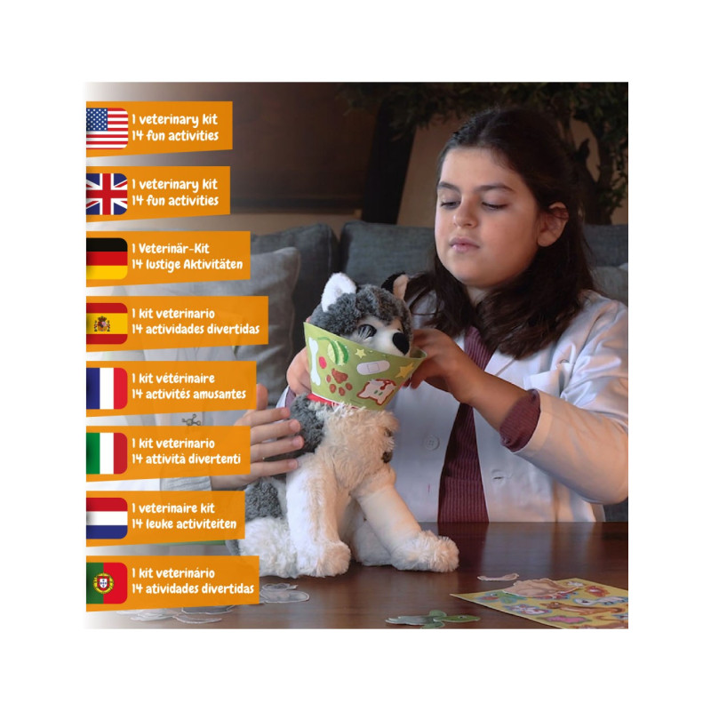 Explore as mais de 16 experiências neste kit veterinário de brinquedo para meninos e meninas, e divirta-se criando a sua própria clínica veterinária.