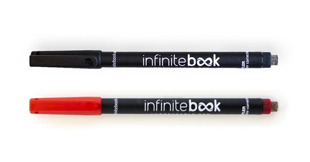 1 marcador de cor preta, 1 marcador de cor vermelha, de escrita fina, especialmente desenvolvido para o teu infiniteBook
