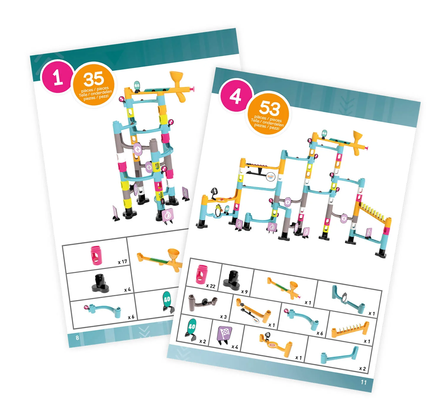 Características: 53 peças e berlindes.