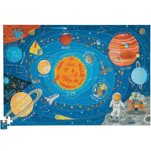 Este Puzzle infantil parece fora do mundo com suas ilustrações lindamente detalhadas dos planetas, asteróides, constelações, naves espaciais e astronautas.