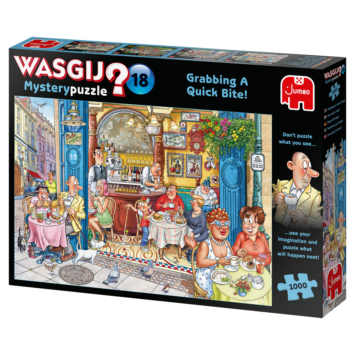 Wasgij MYSTERY utiliza o conceito 'o que acontece a seguir?' no qual terás de usar a imaginação para construir o puzzle que mostrará o que aconteceu minutos depois às personagens mostrados na imagem da caixa.