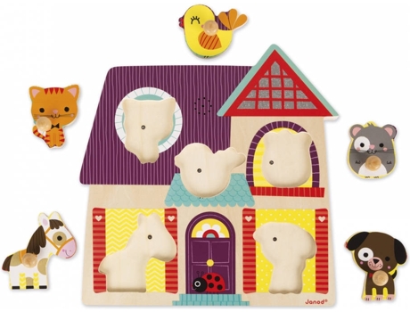 Este puzzle de sons sobre o tema animais de estimação, ajudará o seu filho a reconhecer o grito de diferentes animais (cão, pássaro, hamster, gato, cavalo).