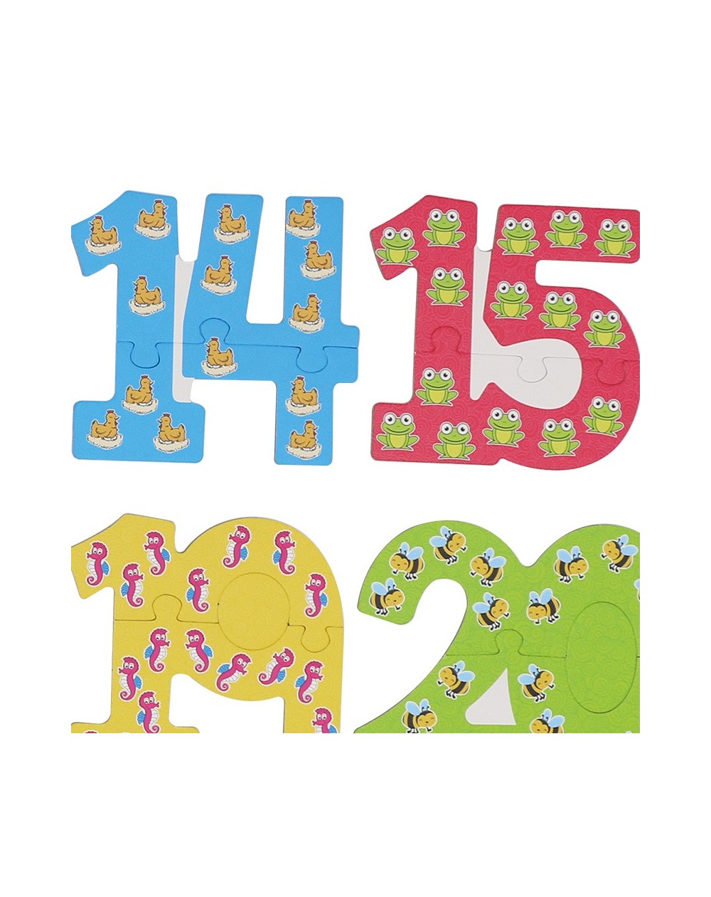 Puzzle com 40 peças coloridas de papelão para formar os números de 1 a 20.